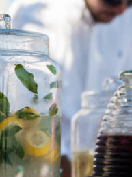 Lemon & Sour cherry juice, water infused with cucumber & sparkling wine
