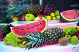 Strawberries, Cherries, Raspberries, Bananas, Pineapple, Melon, Grapes, Tangerine, Kiwi (choose 3 – fruits are subject to availability in the local market)
